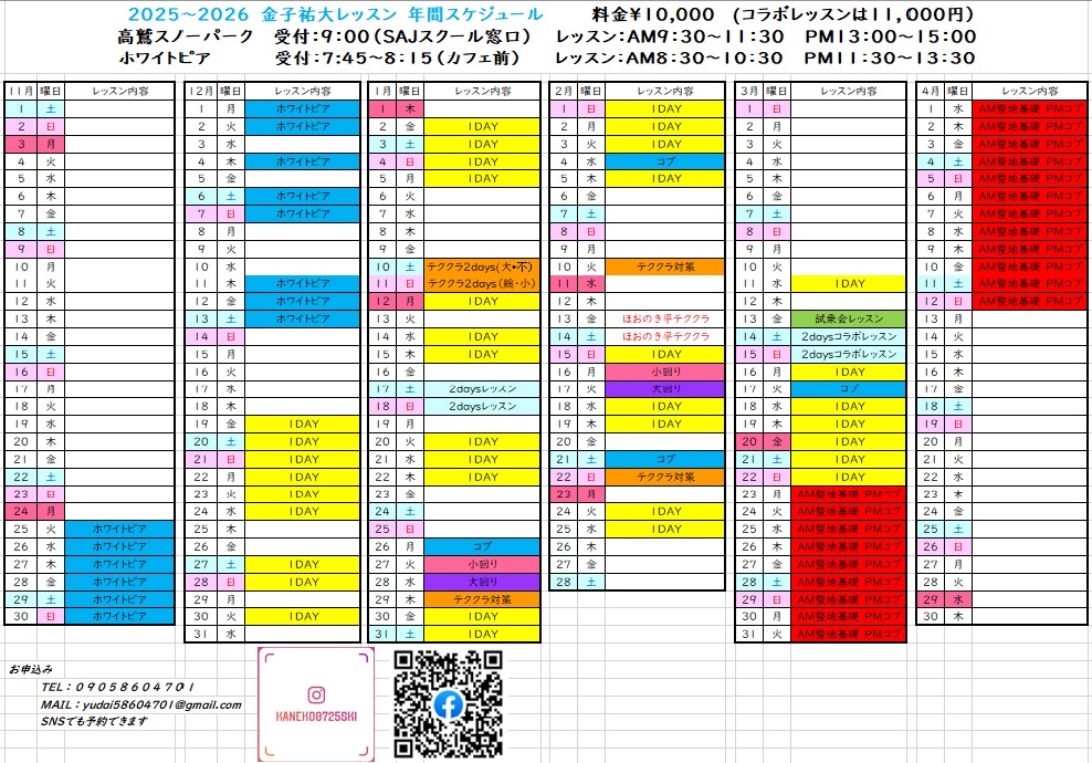 内容変更の可能性があります。最新情報をSAJスクールHP・金子SNSにてご確認ください。
