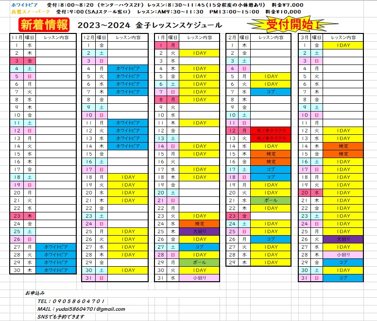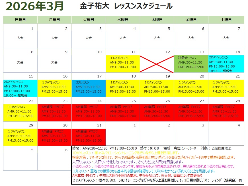 ※天候、ゲレンデ状況、その他の都合により変更または中止する場合があります