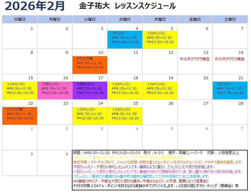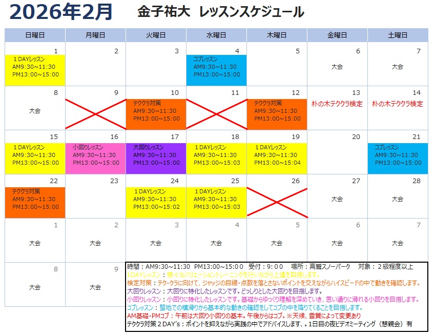 内容変更の可能性があります。最新情報をSAJスクールHP・金子SNSにてご確認ください。
