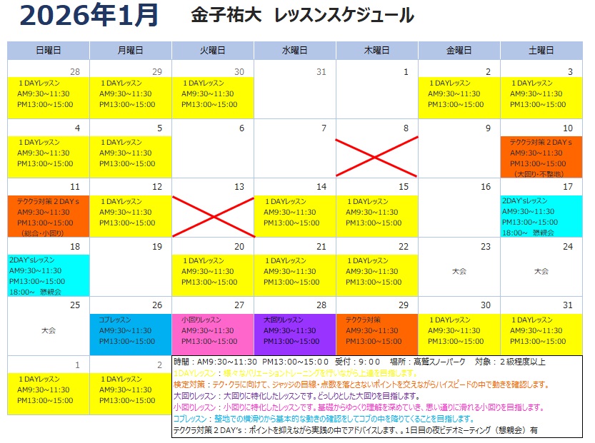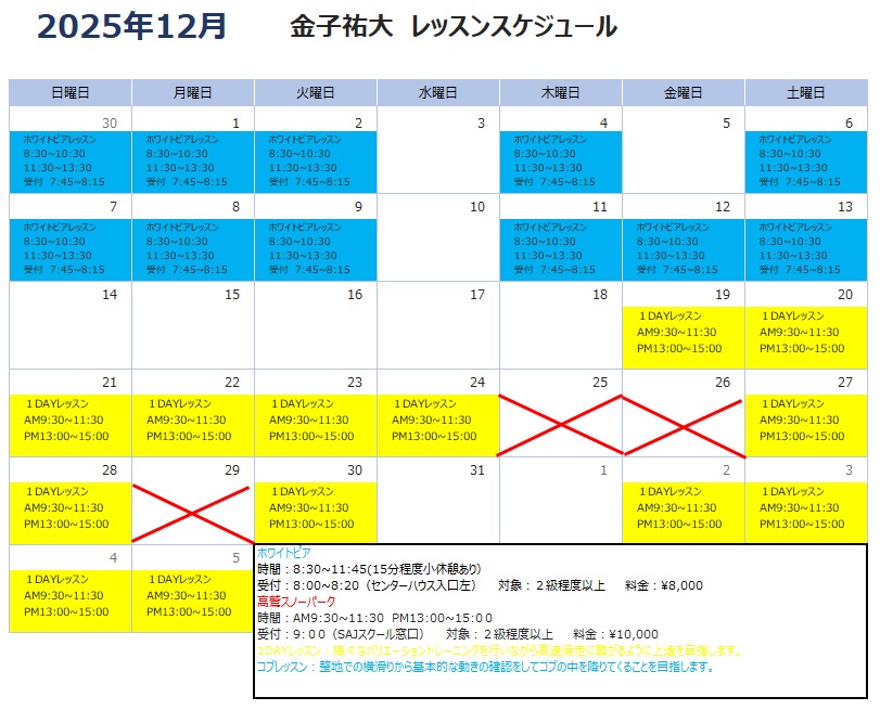 ※集合場所、講習時間は、天候やゲレンデ状況により変更となる可能性があります。